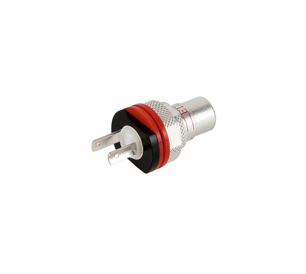The FS-08 silver female RCA connector is ETI Research latest creation. Boasting a pure silver signal tip with pure silver solder blade and an earth/ return section being silver-plated copper. The reason the return section is silver-plated copper rather than pure silver is due to the soft, very ductile, malleable nature of silver. The solder blades have a slight curve to ease soldering. The FS-08 model is designed with the same principals as the FR-TC07, with ultra-low mass to avoid added capacitance and resistance which is very common in most female RCA chassis connectors. As a result ETI RCA chassis connectors offer a better transient response and a better soundstage. Not only is the type of material very important but the amount of mass is equally important. Both our chassis models have as much mass stripped away. An expensive manufacturing process incorporating a polymer connector house and polymer threading guarantees complete isolation from the chassis. Brass is very good at vibration damping and EMI/RF noise rejection. The nut on both ETI RCA socket designs is made from brass. This nut on the polymer thread offers easy mounting without touching any of the conducting sections.